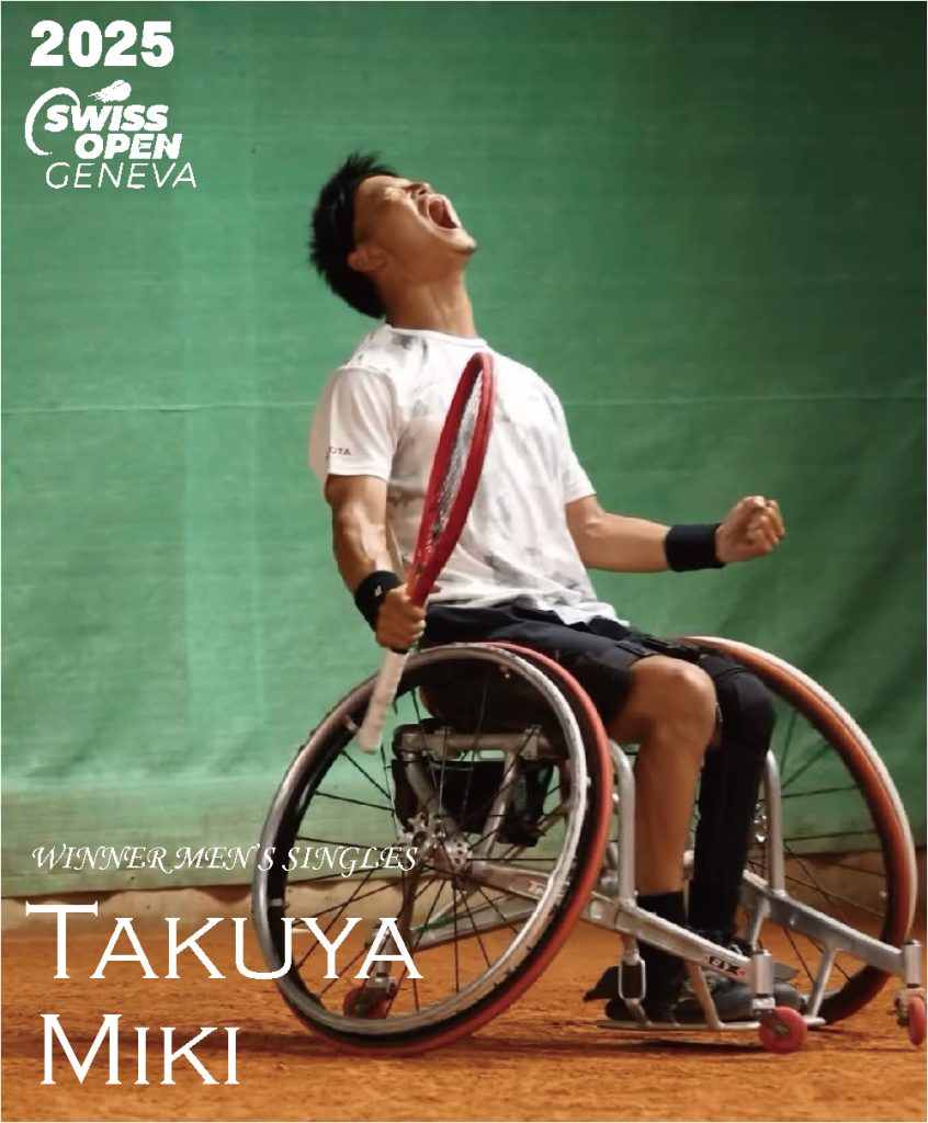 車いすテニス三木拓也選手、SWISS OPEN GENEVAで優勝!BLOG 2025.07.20嬉しいニュース♪車いすテニス三木拓也選手が、スイスで開催されていたSWISS OPEN GENEVAで優勝![FINAL]Takuya Miki – Daniel Rodrigues6-3,6-3準決勝をウデ選手から逆転勝利し、そのままの勢いで決勝を勝利。準決勝の勝利が嬉しくてメールしようかと思ったものの決勝があるので躊躇しました(笑)おめでとうございます!もう一週遠征が続くとのことなので怪我無く頑張ってください!!!