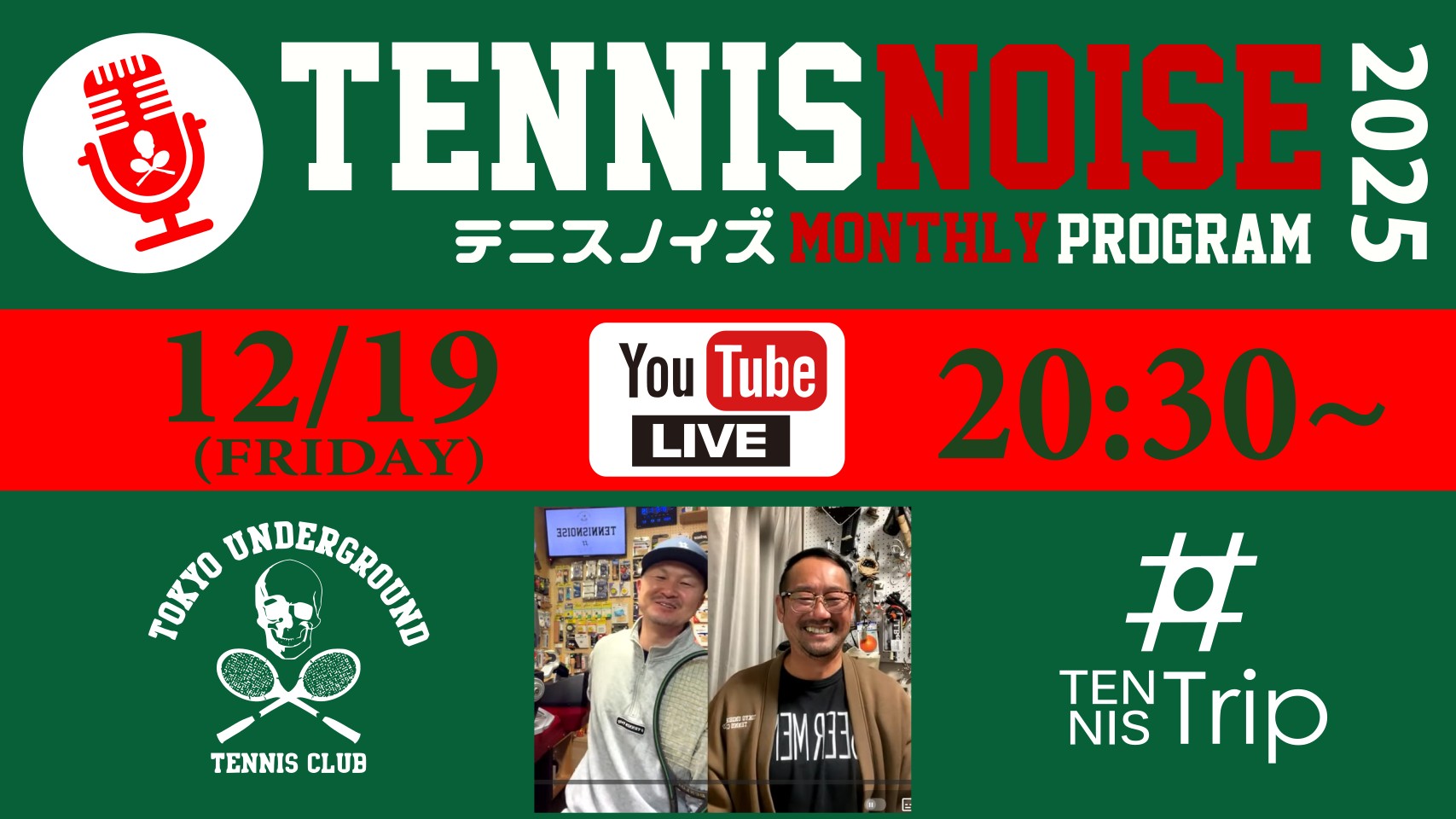12/19(金)20:30~雑談YouTubeLIVE【TENNIS NOISE(テニスノイズ)】TUTC佐藤武文氏と!