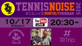 BLOG10/17(金)20:30~雑談YouTubeLIVE【TENNIS NOISE(テニスノイズ)】TUTC佐藤武文氏と! 10/17(金)20:30~【TENNIS NOISE(テニスノイズ)】毎月恒例TUTC佐藤武文氏との雑談YouTubeLIVE!今回は【TokyoUndergroundTennisClub】チャンネルでの配信予定です。【TU... 2025.10.17BLOG